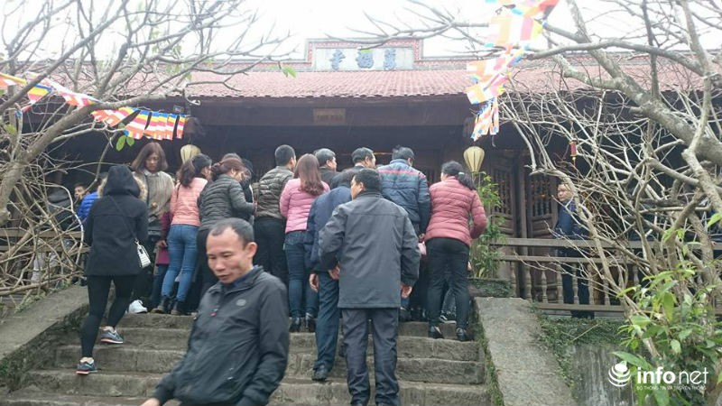 Du khách chen chân tại lối lên Tam Bảo chùa Phật Tích đầu xuân 2018. |
