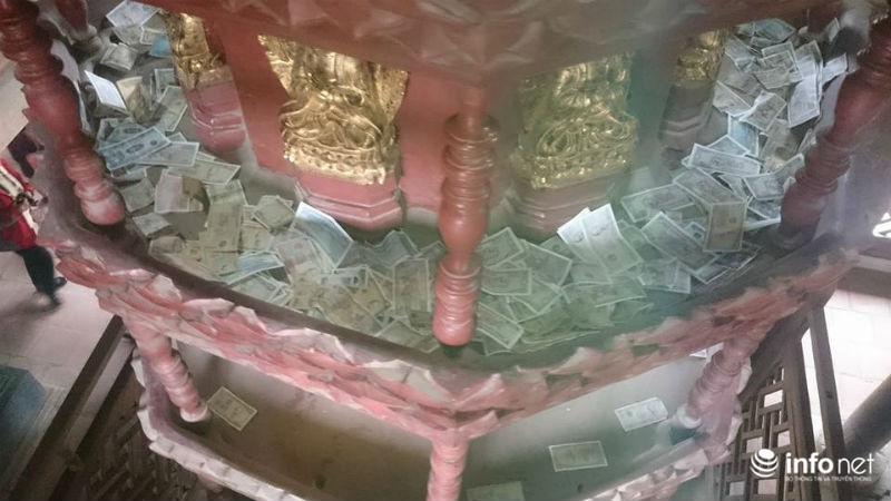 Trong khi đó, ở khắp các ban thờ trong đền, chùa, du khách cố nhoài người để đặt tiền lẻ lên đĩa. Hiếm hoi lắm mới có người nhét tiền vào hòm công đức, tuy nhiên vẫn có người đặt tiền lên đĩa trái cây bên cạnh.