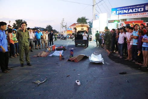 Hiện trường vụ tai nạn làm 2 cháu nhỏ chết thảm. |