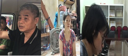 Từ trái sang: ông Phiến, bà Quy, cô giáo Thủy. |