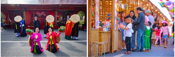Bên cạnh đường hoa, khi tới khu đô thị Mailand Hanoi City trong dịp Tết Quý Mão, du khách có thể tham quan phố đi bộ Pont de Long Bien với không gian mang đậm dấu ấn Hà Nội xưa kết hợp một số hoạt động thú vị như: Gói bánh chưng, nặn tò he, xin chữ ông Đồ… và nhiều hoạt động biểu diễn nghệ thuật khác.