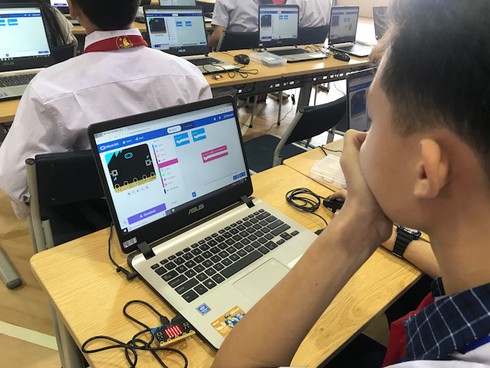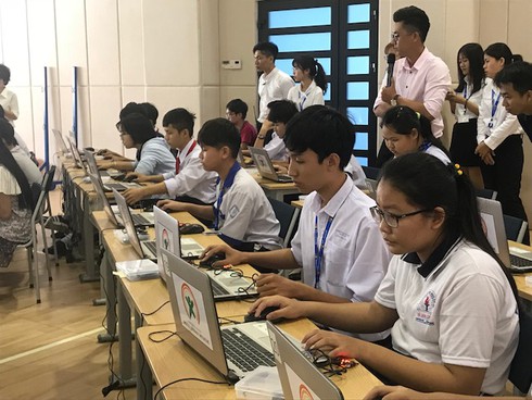 Các học sinh tranh tài trong vòng chung kết Giờ lập trình 2018. |