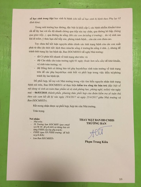 Biên bản phụ huynh gửi ban giám hiệu về sự việc (ảnh: PHCC) |