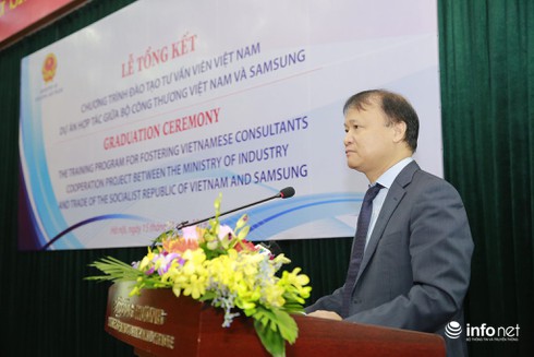 Phát biểu tại sự kiện, ông Choi Joo Ho, Tổng giám đốc Samsung Việt Nam cho biết: “Samsung Việt Nam tự hào được chung tay cùng Chính phủ Việt Nam nhằm nâng cao năng lực cạnh tranh của các doanh nghiệp Việt Nam nói riêng và hướng tới sự phát triển của ngành công nghiệp hỗ trợ Việt Nam nói chung. Sự thành công của Dự án hợp tác đào tạo chuyên gia tư vấn Việt Nam về công nghiệp hỗ trợ lần này sẽ là tiền đề để chúng tôi tiếp tục thực hiện những chương trình hợp tác khác quy mô hơn, nhằm khẳng định cam kết luôn là một trong những “đầu tàu” để phát triển công nghiệp hỗ trợ của Việt Nam.”