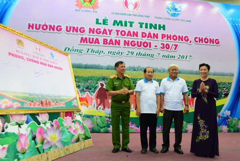 Hơn 500 đại biểu đã tham gia buổi lễ mít tinh hưởng ứng ngày phòng, chống mua bán người. Ngày toàn dân phòng, chống mua bán người (30/7) năm nay tập trung vào lĩnh vực phòng, chống mua bán người thông qua hôn nhân có yếu tố nước ngoài.