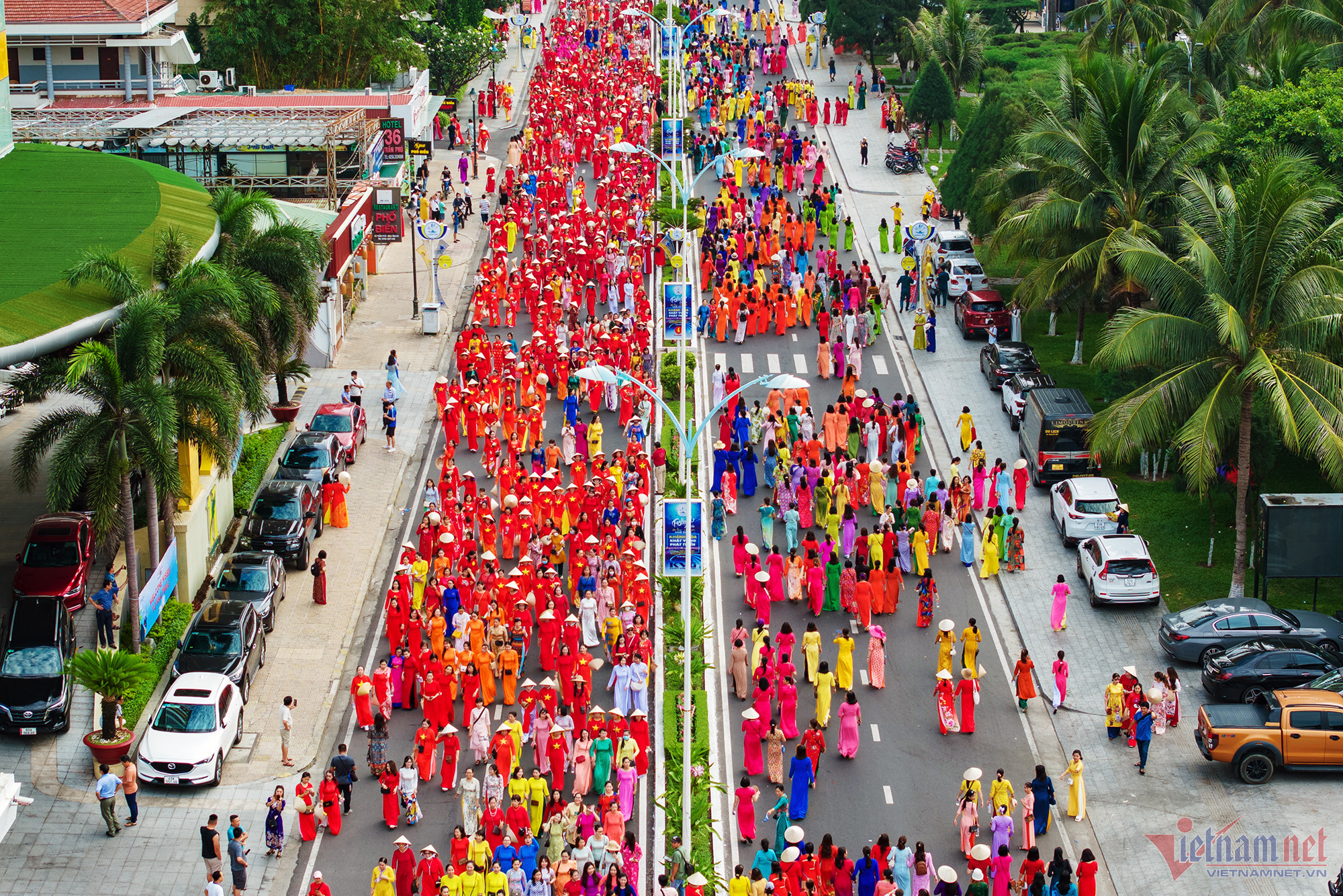 Hơn 6.000 người cùng đồng diễn áo dài trên cung đường giáp biển, nơi trung tâm của thành phố, được ghi nhận lần đầu tiên có số lượng đông nhất. Ảnh: Vương Mạnh Cường.