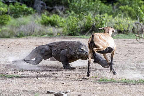 Rồng Komodo to lớn tấn công con mồi trong chớp mắt |
