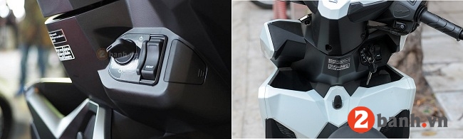 Phía trước của cả 2 phiên bản vẫn được thiết kế với 2 hộc chứa đồ nhỏ, kèm móc treo đồ. Phiên bản Honda Click 150 mới nhất 2018 đã được trang bị khoá thông minh (Smartkey) so với phiên bản cũ (bản Click 125 2018) vẫn sử dụng hệ thống khóa truyền thống tích hợp công nghệ tìm xe, với nút bấm tích hợp trên chìa khóa.