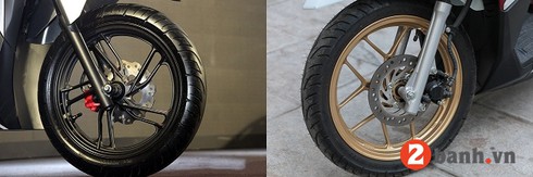 Xe vẫn sử dụng bộ mâm 14 inch, kích thước vỏ trước sau 90/80-14 và 100/80-14 đă được tăng lên 1 size vỏ để phù hợp hơn với tổng thể xe.