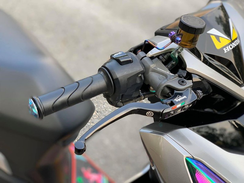 Tận dụng cùm côn Accossato đến từ Ý để kiểm soát hành trình phanh đùm phía sau của con Vario 150 độ. Mẫu tay này có thiết kế nhỏ gọn nên khi ráp vào không phải cắt khoét như các mẫu tay khác. |
