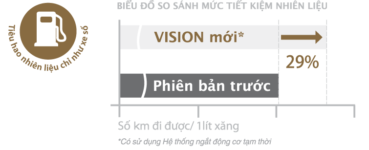 HONDA VISION 2018 có khả năng vận hành mạnh mẽ hơn (công suất máy tăng 4%) và tiết kiệm nhiên liệu hơn 29% so với phiên bản trước (không được trang bị eSP và hệ thống ngắt động cơ tạm thời). (theo số liệu nghiên cứu nội bộ của Honda).