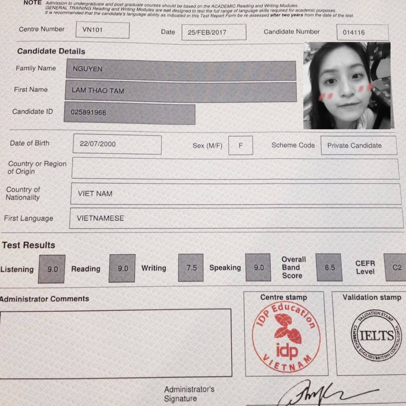 Nữ sinh sinh năm 2000 đạt tổng điểm IELTS 8.5. |