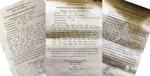 Những lá đơn xin tự nguyện tham gia nghĩa vụ quân sự của thanh niên xã Lĩnh Sơn, huyện Anh Sơn, Nghệ An. |