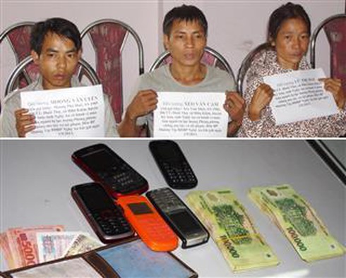 | Các đối tượng bị bắt giữ và tang vật |