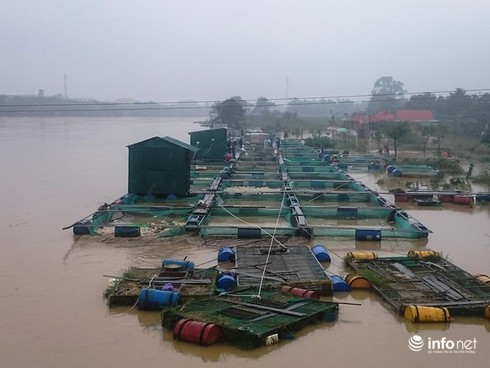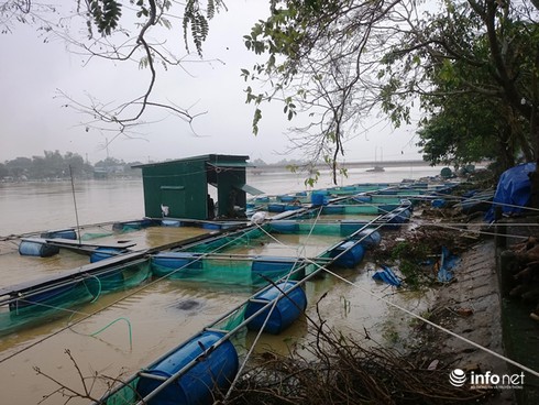 Theo đó, tại sông Bồ đoạn qua thị xã Hương Trà, huyện Quảng Điền (Thừa Thiên – Huế) lũ đã đi qua nhưng hàng trăm lồng cá diêu hồng, cá rô phi, cá trắm… của người dân đã chết và nguyên nhân do lũ về quá xiết, đột ngột, xô đẩy các lồng đong đưa gây hư hỏng… nên nguy cơ dân bị trắng tay nợ nần.