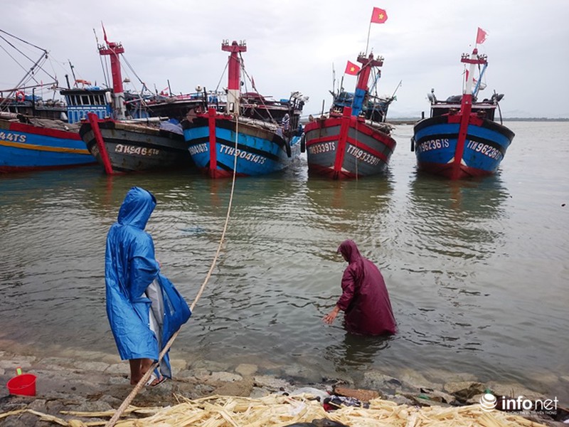 Ghi nhận của PV tại cảng biển Thuận An, âu thuyền xã Phú Hải (huyện Phú Vang) chiều ngày 25/7 cho thấy, nhiều tàu thuyền đã vào nơi trú ẩn an toàn, đã được buộc neo cận thận, thỉnh thoảng ngư dân vẫn ra vào để trực thoát nước trong khoang tàu hoặc sợ gió làm rung chuyển va chạm tàu.