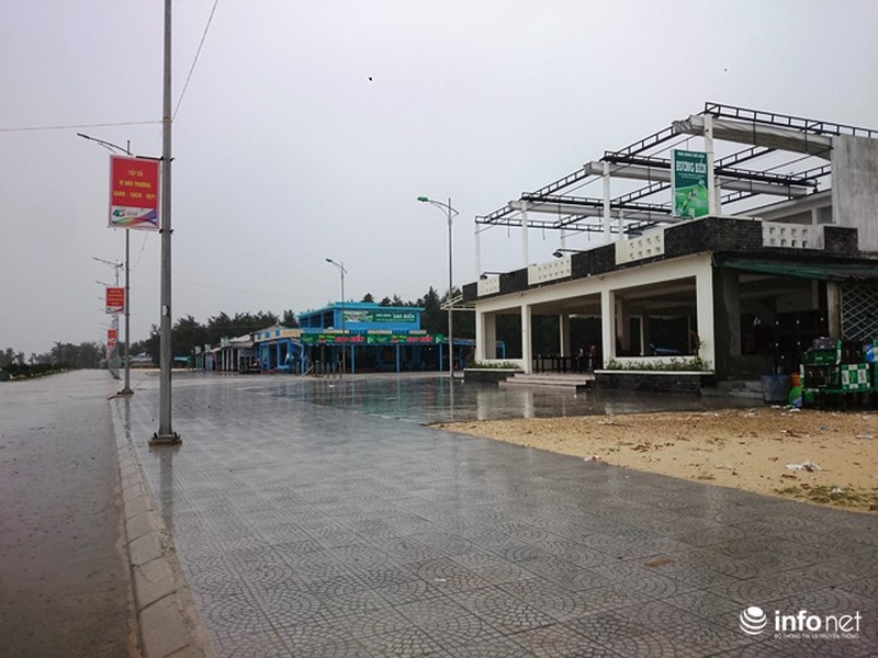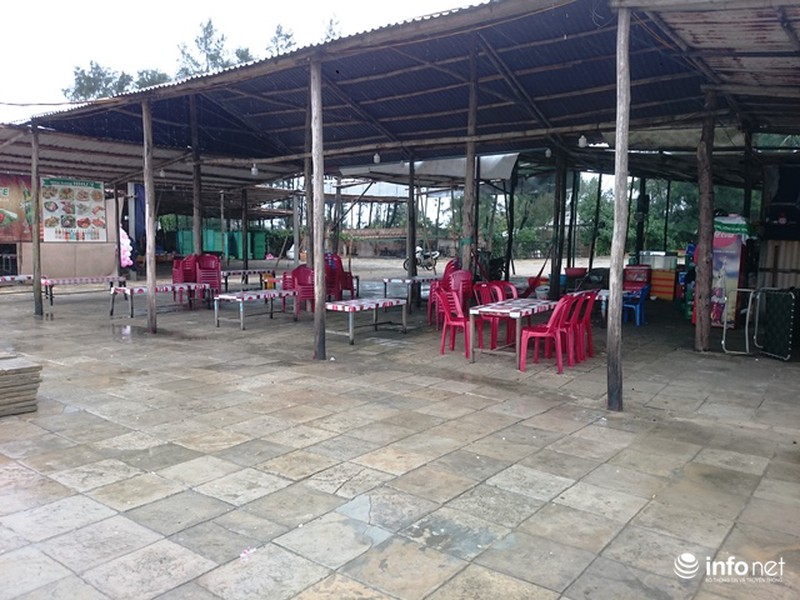 Tại bãi biển Thuận An, các nhà hàng cũng đã xếp bàn ghế ngăn nắp do ảnh hưởng cơn bão.