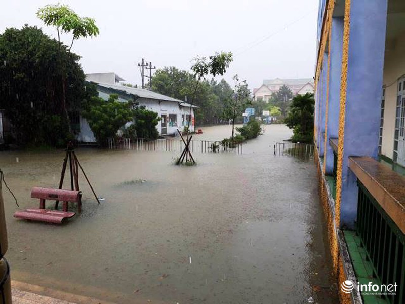 Nước ngập trong sân trường học. |