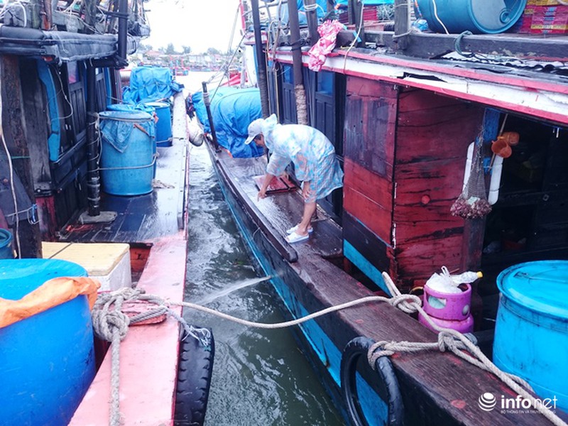 “Đã neo đậu cận thận rồi nhưng phải trực ra vào liên tục, sợ mưa gió tàu mình đụng chạm đến tàu của người khác cùng trú bão và nước ngập vào trong khoang thì phải nổ máy thoát nước ra ngoài không ngập hết đồ bên trong” - ông Nguyễn Tống, trú ở xã Phú Hải (huyện Phú Vang) cho biết.