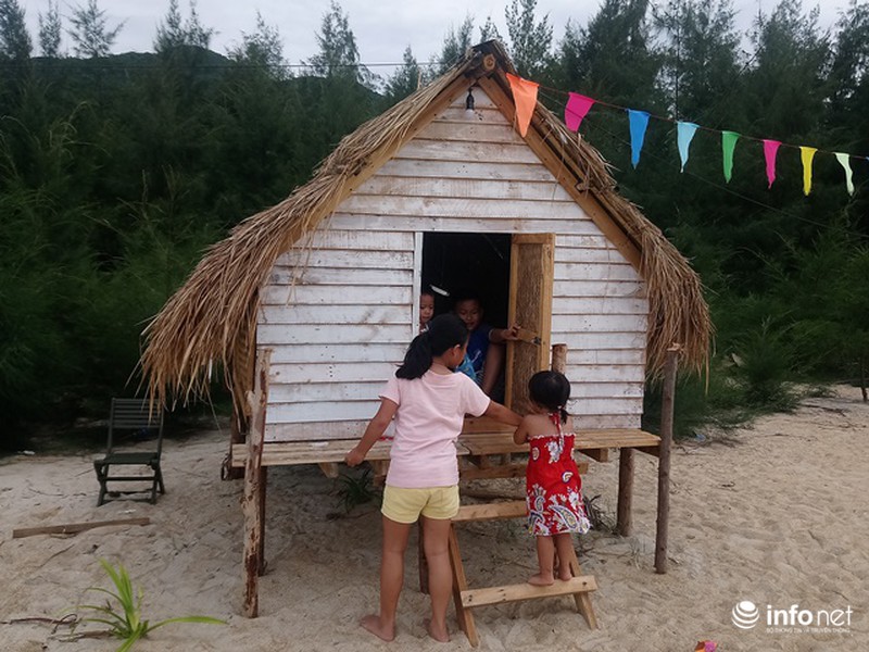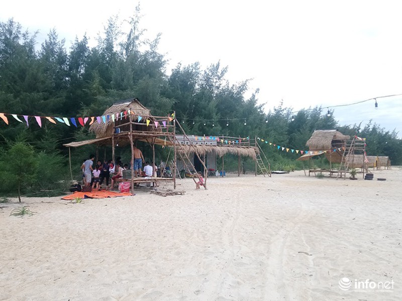 Những căn chòi nhỏ cho du khách nghỉ ngơi buổi trưa hoặc đêm tối tại biển Hải Bình, |