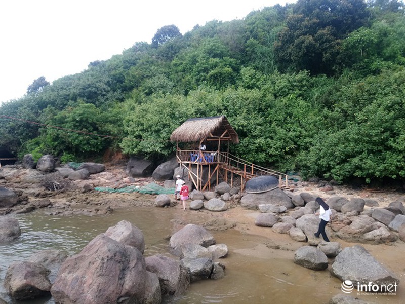 Những căn chòi được người dân dựng trên hòn đá để du khách ăn uống, ngắm biển. |