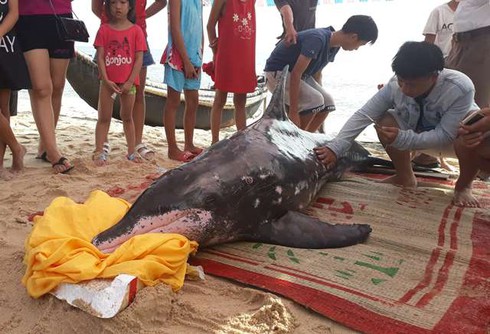“Con cá heo được người dân phát hiện giữa đêm, lúc đó có 5-6 người dân cố đẩy cá ra biển nhưng cá tiếp tục bơi dạt vào bờ. Khi nhận được tin báo chúng tôi đã tiếp tục đẩy cá ra xa hơn nhưng bất ngờ con cá lại phi thẳng vào bờ rồi mắc cạn, do trên cơ thể cá heo có vết thương do vật nhọn đâm phải trong quá trình mắc cạn nên đã chết" - ông Ngô Văn Đủ cho biết thêm.