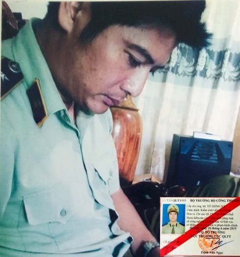 Đối tượng Vũ Hồng Hà và thẻ ngành QLTT. |