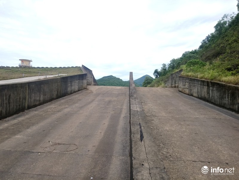 Đập tràn phía trên đã khô từ lâu do không có nước. |