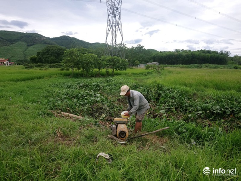 “Gia đình tôi có máy bơm, ai gọi thì tôi đến bơm thuê kiếm thêm thu nhập cho vợ con. Tùy vào khoảng cách nơi có nước và ruộng lúa xa hoặc gần thì trung bình máy tôi bơm lấy 120.000 đồng/1h” – người bơm nước thuê cho ông Hoàng Văn Tư cho hay.