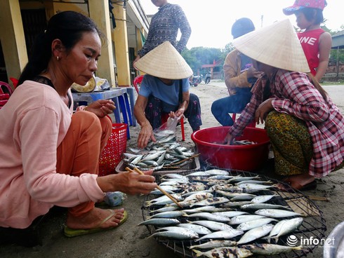 Các ngư dân xã Phong Hải (huyện Phong Điền, tỉnh Thừa Thiên – Huế) cho biết thêm, sau khi đánh bắt được vào bờ thì chủ yếu là bán tại chợ quê ở trong xã và khi nào lượng hải sản đánh bắt được nhiều thì gọi điện cho các thương lái về bờ biển thu mua rồi đưa đi bán ở chỗ khác nên cũng không lo đầu ra vì đánh bắt gần bờ thời gian ngắn, được cũng ít.