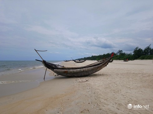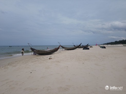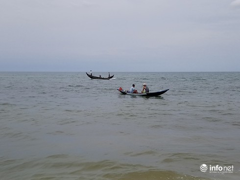 Có mặt tại bờ biển xã Phong Hải (huyện Phong Điền, tỉnh Thừa Thiên Huế), PV chúng tôi chứng kiến nhiều chiếc ghe đang nổ máy tạch tạch chạy đi chạy lại sát bờ khoảng 100m, nhiều ngư dân khác đứng trên bờ hoặc ngồi và chạy quanh dọc bãi cát hướng ra biển để tìm khu vực có hải sản ẩn nấp.