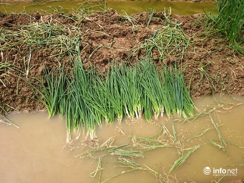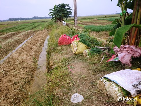 Hành lá được rửa sơ qua và bán cho thương lái tại ruộng. |