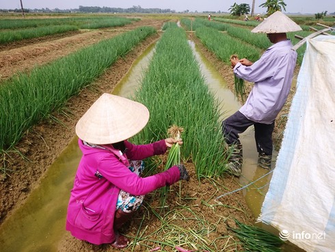 "Theo tiêu chuẩn VietGAP, cứ 45 ngày thu hoạch hành 1 lần (1 vụ có 3 lần thu hoạch), bình quân 1 sào cho thu hoạch 1,5 tấn/năm với giá 25 nghìn đồng/kg, 4 sào sẽ cho gia đình tôi thu nhập trên 150 triệu đồng. Hàng ngày thương lái đến mua tại vườn liên tục nên thu nhập khá ổn định" – ông Phan Danh (trú thôn Cổ Bưu, phường Hương An) cho hay.