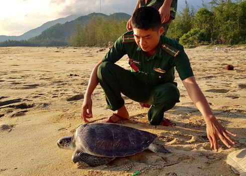 Cá thể rùa quý hiếm được lực lượng chức năng thả về môi trường tự nhiên (Ảnh: BĐBP Thừa Thiên - Huế). |