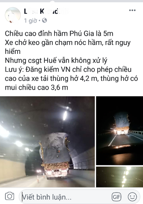 Vào trưa ngày 25/2, một tài khoản facebook có tên L. K. D chia sẻ thông tin về việc xe qua hầm. |