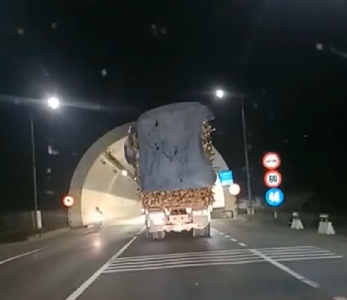 Hình ảnh chiếc xe chở keo tràm vào hầm được tài khoản facebook L.K.D chia sẻ. |