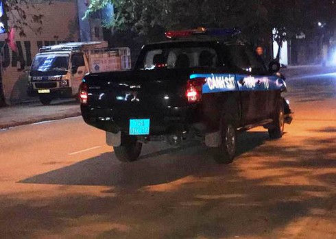 Chiếc xe biển xanh của cảnh sát trật tự. |