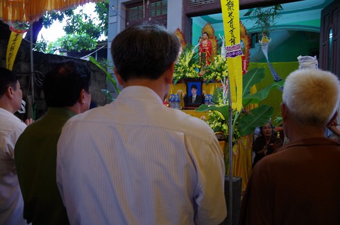 Ông Nguyễn Văn Phóng - Chủ tịch UBND tỉnh Hưng Yênvà Đại tá Đỗ Đình Hào - Giám đốc Công an tỉnh thắp hương cho 2 nạn nhân bị sát hại. |