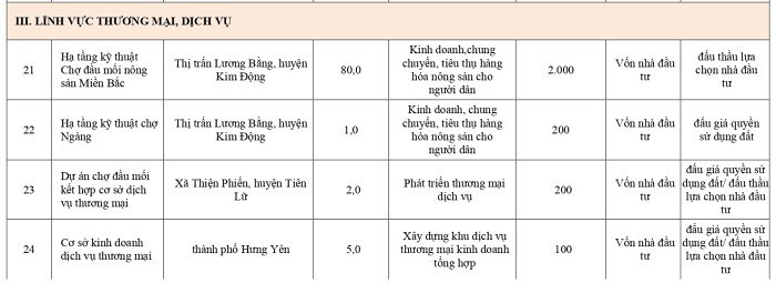 Cụ thể danh mục các dự án thương mại, dịch vụ và nhà ở, đô thị Hưng Yên ưu tiên thu hút đầu tư: