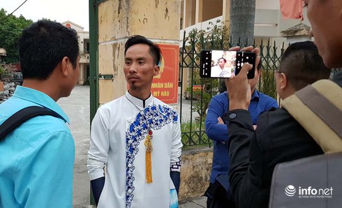 Ảnh chụp bị cáo Trần Thoát Hoan ngoài cổng tòa án huyện Mỹ Hào (ảnh chụp chiều tối 29/11). |