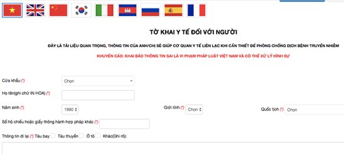 Trên bảng thông tin khai báo, ngoài ngôn ngữ tiếng Việt đã có thêm tiếng Anh, Trung Quốc, Hàn Quốc, Italy, Iran, Nhật Bản, Nga và Campuchia. Các ngôn ngữ khác sẽ tiếp tục được bổ sung.