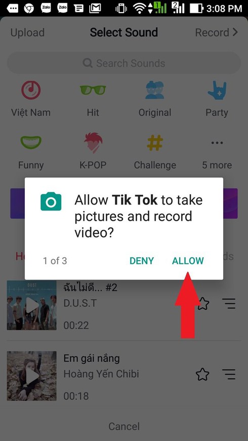 Khi quay clip Tik Tok thì tất nhiên chúng ta nên cấp một số quyền về camera và mic cho ứng dụng. |
