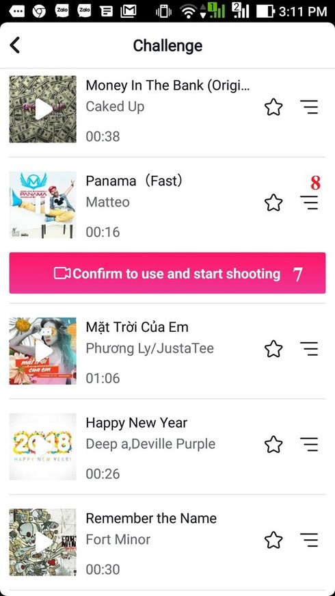 Ở mục chính biểu tượng dấu + là nơi chúng ta làm clip. Ở đó chúng ta có thể bấm Record để quay luôn, hoặc chọn một bài hát, một hiệu ứng để nhập vai. Hơn nữa trước khi nhập vai chúng ta có thể xem một vài clip nhập vai tương tự của người khác từng làm.