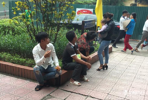 Tương tự, tại Bệnh viện Nhi trung ương, những ông bố rảnh rỗi lại tranh thủ chạy ra sân của bệnh viện túm năm, tụm ba vào rít thuốc lá. Khi được phóng viên nhắc nhở họ liền tỏ ra khó chịu thậm chí cho rằng hút thuốc lá là quyền của mình.