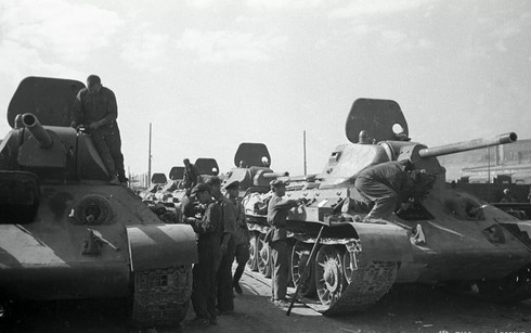 Những chiếc xe tăng T-34 trên con đường cải tiến. Ảnh: RIA. |