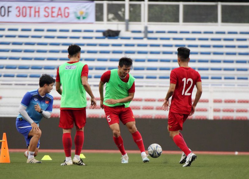 Trong sáng ngày hôm nay (26/11), HLV Park Hang-seo cho lực lượng U22 Việt Nam thành 2 nhóm. Nhóm các cầu thủ đá chính trong trận gặp U22 Brunei chỉ tập thể dục và mát-xa hồi phục tại khách sạn. Trong khi đó, nhóm các cầu thủ dự bị hoặc thi đấu ít trong đó có Quang Hải, Hùng Dũng, Văn Hậu, Tiến Linh… tập các bài phối hợp chiến thuật tại sân Rizal Memorial.