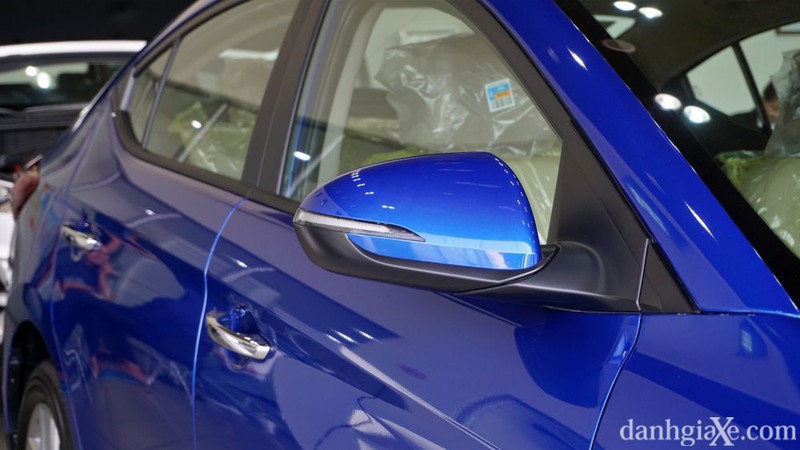 Khung cửa sổ được sơn đen hiện đại, trong khi các phiên bản cao cấp sẽ có thêm đường viền chrome ở chân cửa sổ, đem lại sự sang trọng hơn cho Hyundai Elantra. Gương chiếu hậu tất cả phiên bản đều trang bị chỉnh điện, tích hợp đèn báo rẽ, trong khi tính năng gập điện chỉ trang bị trên các phiên bản sử dụng hộp số tự động.