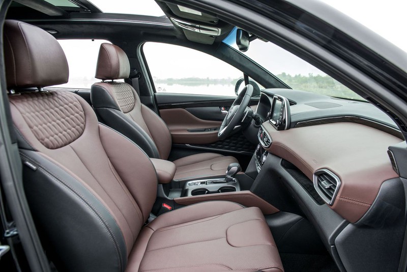 Cả 6 phiên bản Hyundai SantaFe 2019 đều trang bị ghế bọc da, ghế lái chỉnh điện, thiết kế mới ôm lưng và sang trọng hơn. Hai biến thể Premium cao nhất sử dụng tông màu nâu, có thêm ghế phụ chỉnh điện, nhớ vị trí ghế lái và tích hợp sưởi/thông gió. Bốn bản còn lại ghế màu đen.