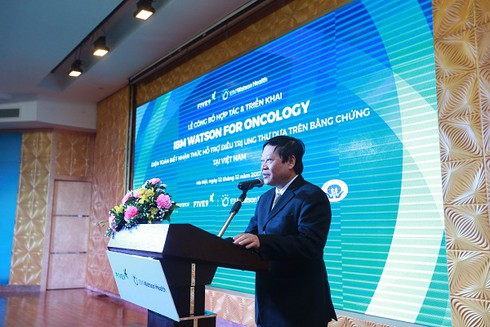 GS.TS Nguyễn Viết Tiến, Thứ trưởng Bộ Y tế nhận định, IBM Watson for Oncology là bước tiến mới trong ứng dụng công nghệ thông tin vào các hoạt động chăm sóc sức khỏe cho bệnh nhân ung thư tại Việt Nam. |