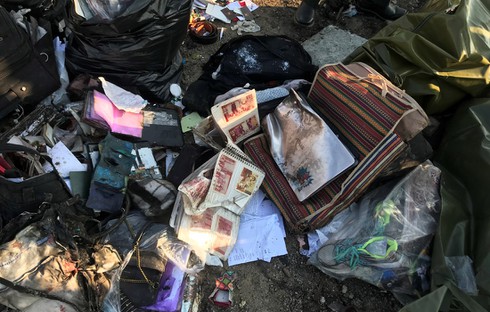 Một số vật dụng còn lại sau khi máy bay bốc cháy. |